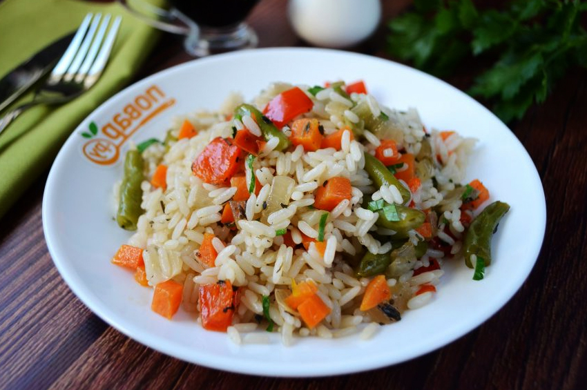 - Sebzeler neredeyse hazır olduğunda, onlara yıkanmış pirinci ekleyin ve bir dakika kızartın,