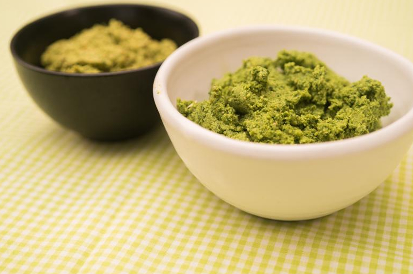 - Her iki pesto tarifi içinde içinde aynı yöntem geçerlidir; Tüm malzemeleri mutfak robotuna koyun veya bir havan tokmağı kullanın ve pürüzsüz olana kadar ezin