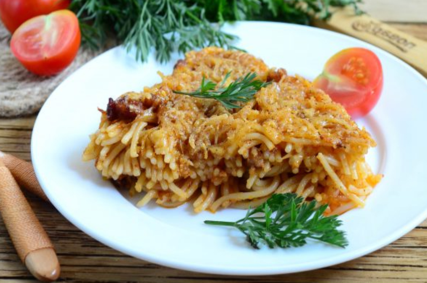 • Peynirin yarısını kabaca rendeleyin ve spagetti sos karışımına ekleyin,