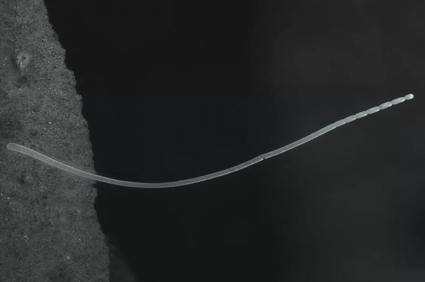 Thiomargarita magnifica adı verilen bakteri, Fransız Karayipleri’nde su altına gömülü, çürüyen mangrov ağacı yaprakları üzerinde keşfedildi. Tek hücreli bu organizmanın tehlikeli olmadığı ve insanlarda hastalığa yol açmadığı belirtiliyor.