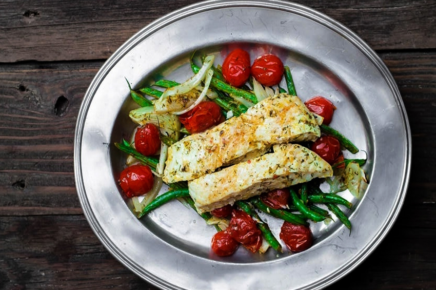 - Bir tabağa az miktarda sebze ve üzerine birkaç parça balık koyup servis yapın,
