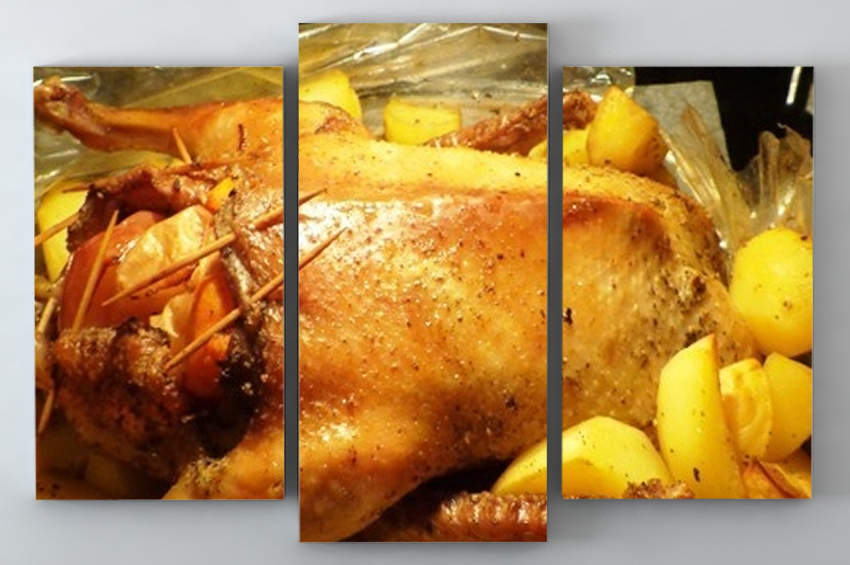 - Ördeğin içine havuç ve bir elma ile doldurun,