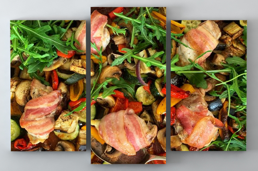 - Sebzeleri 10 dakika pişirin. Sebzeler pişirilirken tavuğu pastırma ile sarın