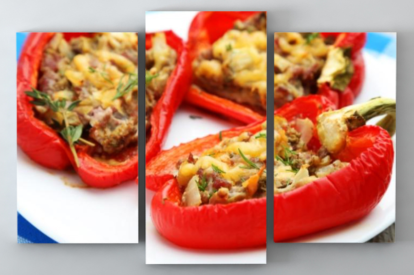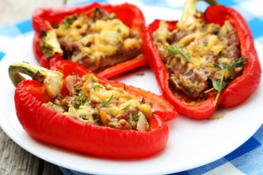 - Ton balığı karışımını kırmızı biberlerin içine dökün ve kalan peyniri üstüne serpin,