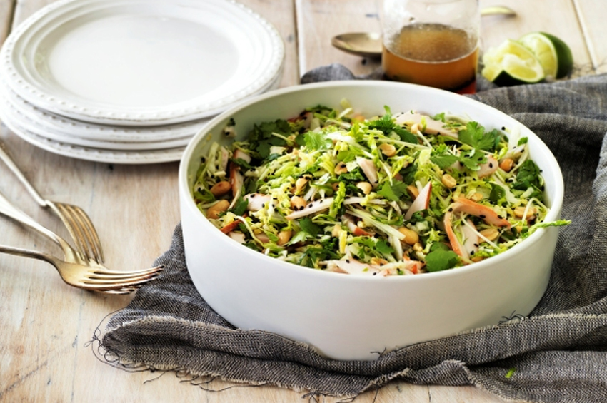 - Tavuğu küçük parçalara ayırın ve lahana salatası ile karıştırın,