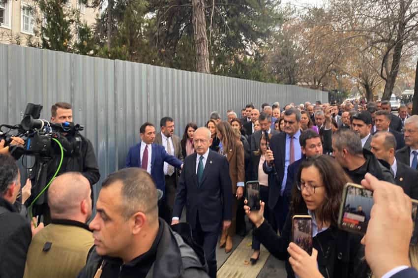 Bugün partisinin Meclis grubunu olağanüstü toplayan CHP Genel Başkanı Kemal Kılıçdaroğlu, yaklaşık 20 dakika süren istişareler sonrası beraberindeki vekillerle birlikte Adalet Bakanlığı’na doğru yürüyüşe geçti. Yürüyüş sırasında konuşan Kılıçdaroğlu, özetle şu ifadeleri kullandı::