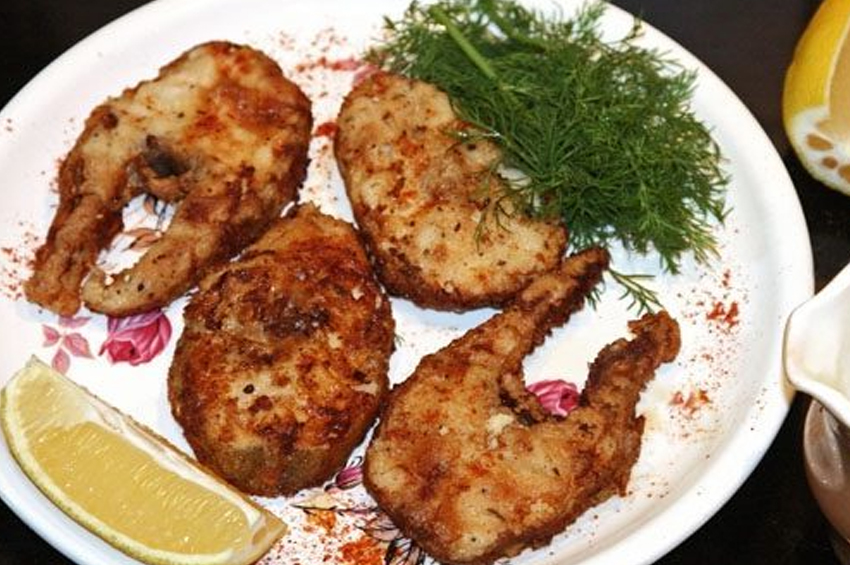 - Bir tavada bitkisel yağı ısıtın, balık parçalarını yağın içine koyun ve orta ateşte kızartın (parçaların kalınlığına bağlı olarak yaklaşık 7-9 dakika),