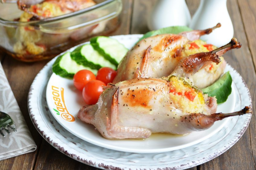 - Bıldırcınları kuskusla doldurun, yağlanmış bir fırın tepsisine koyun,
