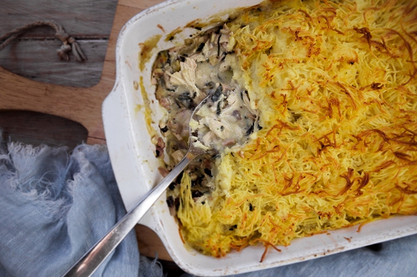 - Tavuğu soğumaya bırakın ve ardından etleri kemiklerden ayırın ve ısırık büyüklüğünde parçalar halinde doğrayın (pişirme sıvısını süzün ve saklayın),