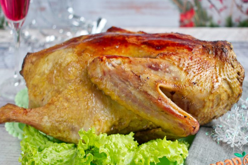 - Ördek göğsünü yukarı çevirin, sıcaklığı 180 dereceye düşürün, 50-60 dakika daha pişirin,