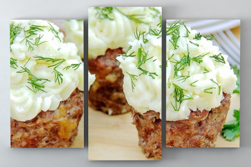 • Küçük kek kalıplarına biraz kıyma koyun ve içine girinti yaparak duvarları oluşturun,