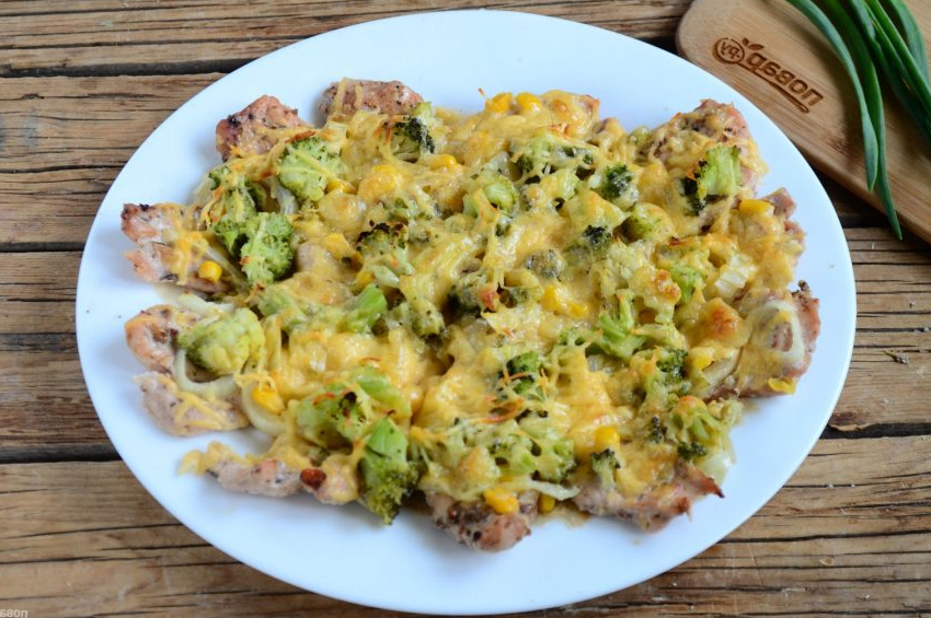 - Soğanı yarım halkalar halinde kesin ve tavuğun üzerine dizin, üstüne konserve mısır serpin,