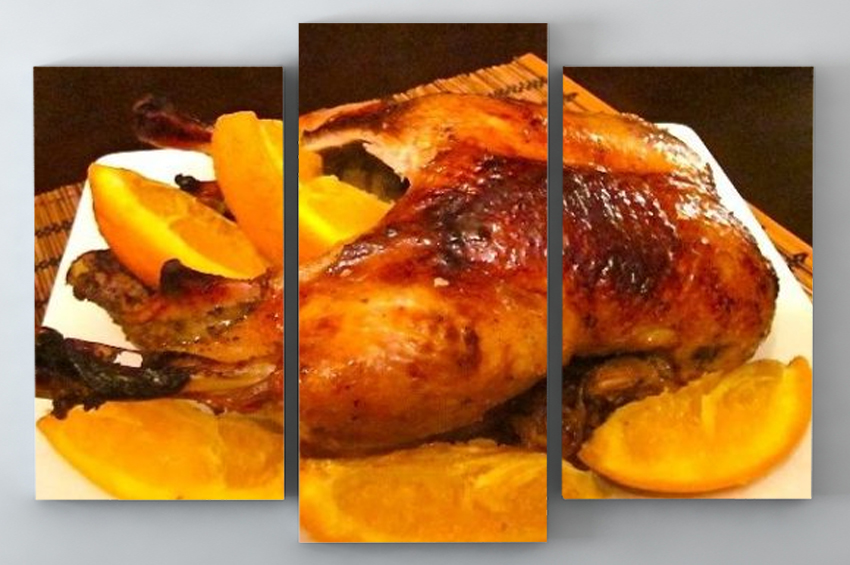 - Ördeği kereviz sapları ve portakal ile doldurun, hafif yağlanmış bir fırın tepsisine koyun,