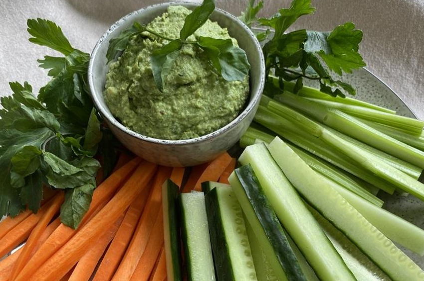 • Soğutun ve krakerler veya çubuklar halinde kesilmiş taze sebzelerle servis yapın,
