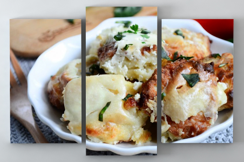 - Pişmiş köfteleri bir fırın tepsisine koyun, üstüne ekşi kremayı dökün,