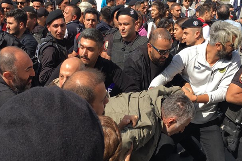 Cumartesi Anneleri/İnsanları’nın yargılandığı davanın 5. duruşması öncesi, Çağlayan’daki İstanbul Adliyesi önünde yapmak istedikleri basın açıklamasına polis müdahale etti. Parti ve sendika yöneticileri ile davanın avukatlarının aralarında olduğu en az 10 kişi gözaltına alındı.