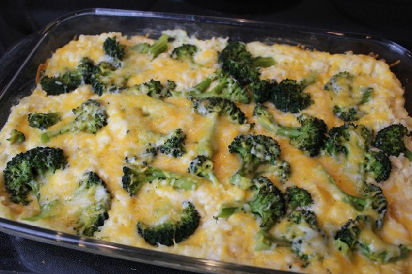 - Daha sonra tüm malzemeler büyük bir kapta karıştırın; haşlanmış tavuk, brokoli, pişmiş pirinç, rendelenmiş peynir (rendelenmiş peynirin bir kısmını bırakın), tuz ve karabiber,