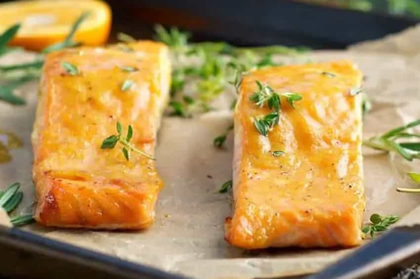 Son olarak somon filetoları ekleyin ve 5 dakika kadar daha pişirin. Portakalı somon servise hazır. Afiyet olsun…