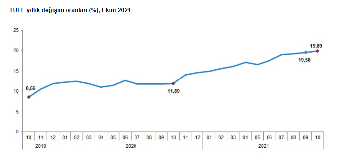 Türkiye İstatistik Kurumu (TÜİK) ‘Ocak 2022 Tüketici Fiyat Endeksi (TÜFE)’ verilerini açıkladı. Buna göre, TÜFE’de 2022 yılı Ocak ayında bir önceki aya göre yüzde 11,10, bir önceki yılın Aralık ayına göre yüzde 11,10, bir önceki yılın aynı ayına göre yüzde 48,69 ve on iki aylık ortalamalara göre yüzde 22,58 artış gerçekleşti.
