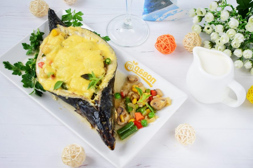 - Balığın içerisini karışım ile doldurun,