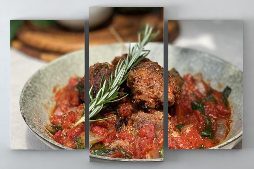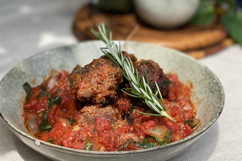 - Köfteleri fırından çıkarın ve tavadaki sosa ekleyin, örtün ve 5 dakika daha kısık ateşte pişirin. Afiyet olsun…
